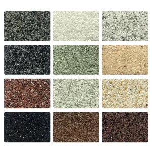 Washed stone art paint, made of resin, natural grit and additives by special process. It adheres perfectly after scraping, is non-flammable, corrosion-resistant and non-slip. Bright colours and natural feel of the coating. It is a new type of building decoration material.